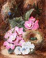 A STILL LIFE OF A BIRD'S NEST AND VIOLETS